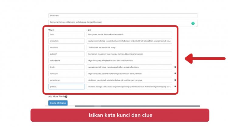Permainan teka-teki silang proprofs ini merupakan cara terbaik membuat games interaktif untuk siswa Anda saat Pembelajaran Jarak Jauh. Membangun banyak kosakata dan meningkatkan keterampilan otak siswa untuk memecahkan masalah. Permainan ini merupakan cara yang bagus untuk mengasah kemampuan kognitif dan memberikan stimulus pada otak siswa untuk membuatnya cepat berfikir dan fleksibel. Buatlah permainan ini, siswa Anda pasti akan menemukan permainan yang akan mereka sukai untuk dimainkan dan dibagikan dengan teman-temannya.