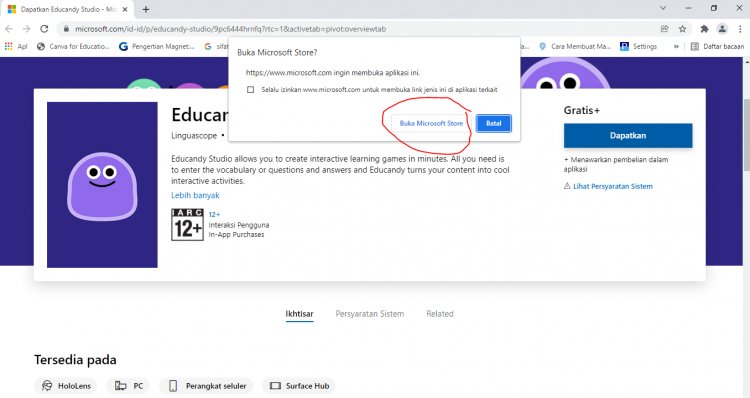 Akan muncul notifikasi lalu pilih Buka Microsoft Store.