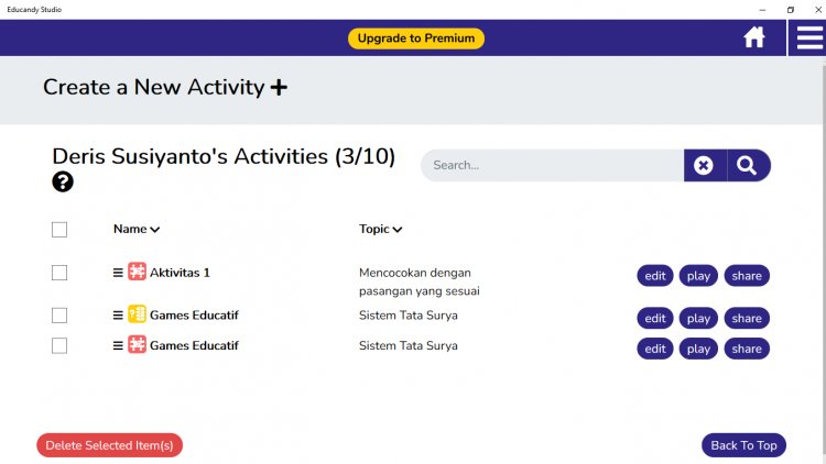 Panduan membuat permainan di educandy adalah sebagai berikut: