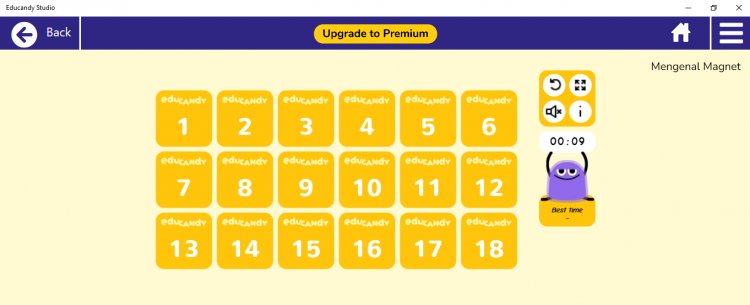Di setiap permainan ada perhitungan waktu, musik, dan score (nilai).
