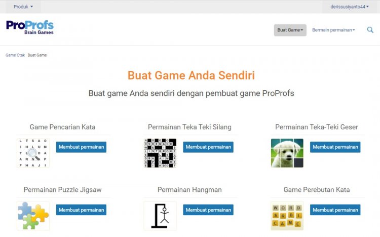 1. Akses situs https://www.proprofs.com/games/