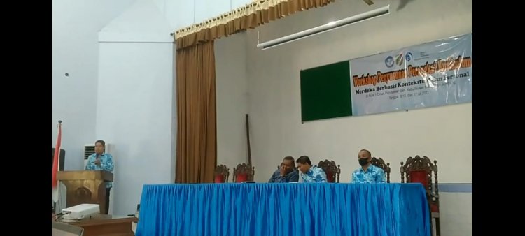 Sumber : Dokumen penulis ( Kepala Dinas Pendidikan memberikan sambutan sekaligus membuka acara workshop)