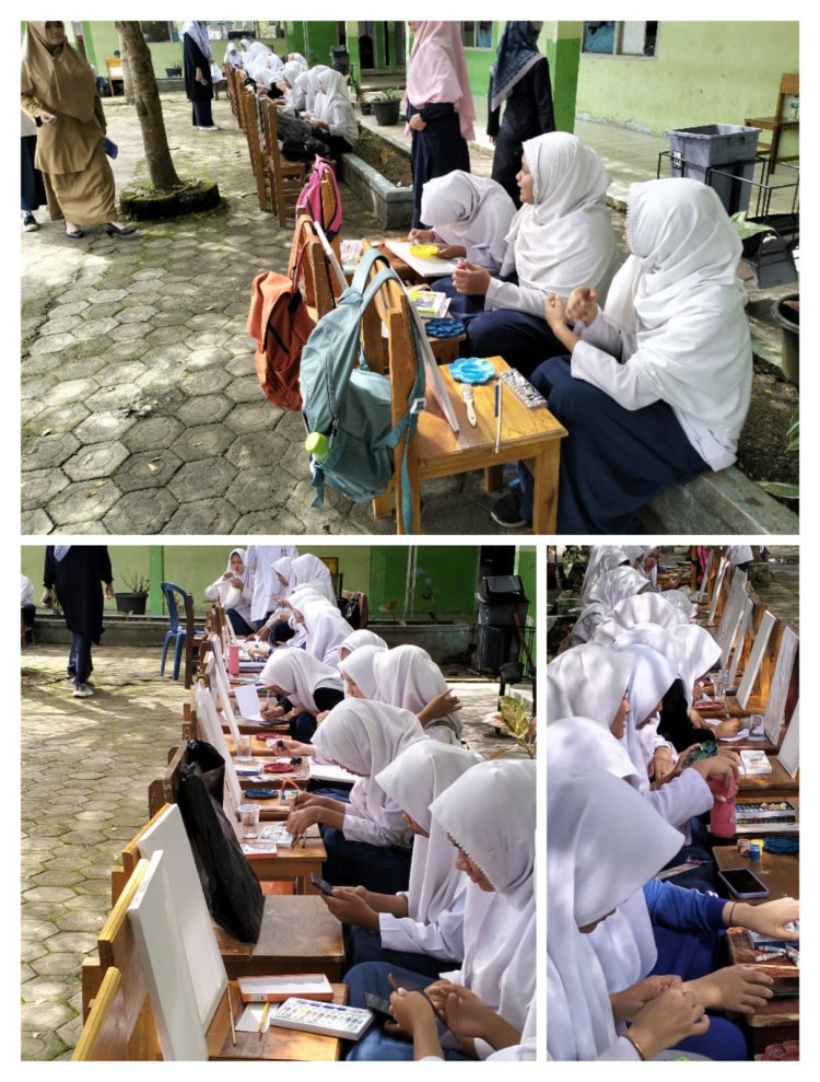 Pertama seni rupa, yaitu melukis dengan menggunakan canvas dan cat air bertemakan alam.