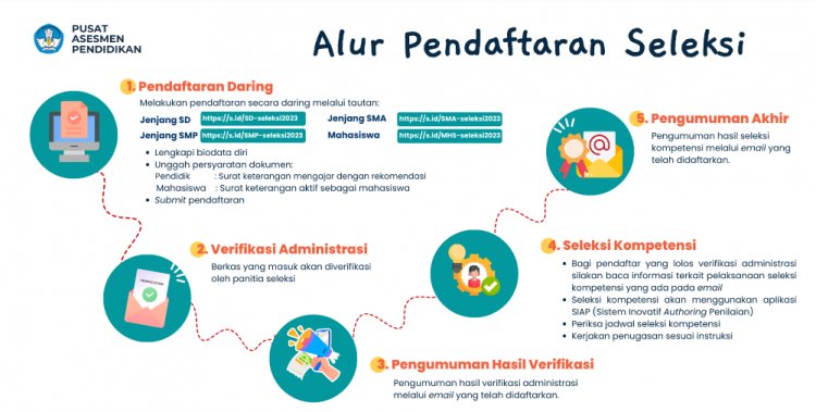 Pusat Asesmen Pendidikan (Pusmendik) Kementerian Pendidikan, Kebudayaan, Riset dan Teknologi membuka Seleksi penulis soal tes terstandar tahun 2023. Pendaftaran seleksi ini dibuka pada 9-13 Januari 2023 yang lalu. Seleksi ini terbuka untuk guru dan mahasiswa S2 dengan total 6.500 kuota.